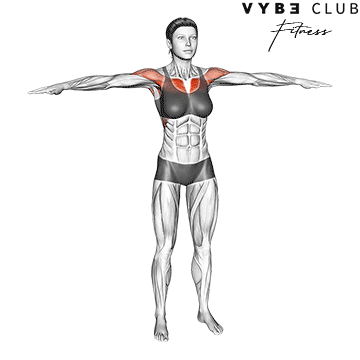 Stand tall with feet shoulder-width apart. Extend your arms straight out to the sides, parallel to the floor, with palms facing down.