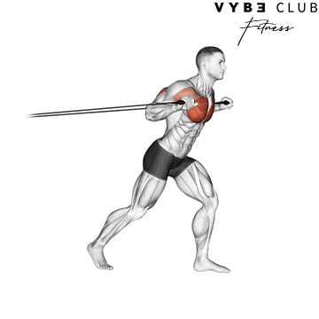 Attach a resistance band to a stable anchor at shoulder height, such as a door handle or a sturdy post. Stand facing away from the anchor, holding one end of the band in each hand. Position your feet shoulder-width apart and engage your core.