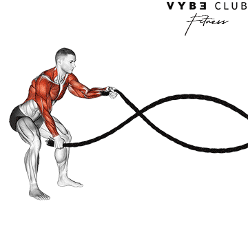 - Set Up: Anchor the battle rope to a stable object or use a rope with both ends in hand. Stand with feet shoulder-width apart, knees slightly bent, and hips slightly pushed back. Hold one end of the rope in each hand.