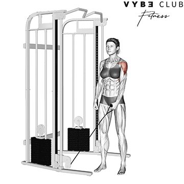Attach a handle to the bottom of a cable machine. Stand sideways to the machine, holding the handle with the hand farthest from it using an overhand grip.