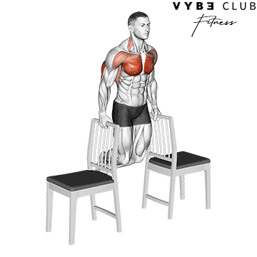 Dips between chairs primarily target the triceps, chest, and shoulders. This exercise effectively builds upper body strength and engages the core for stabilization. It’s an excellent bodyweight movement that helps improve pressing power and develops muscle definition in the arms and chest. By adjusting the range of motion, you can modify the intensity to suit your fitness level.