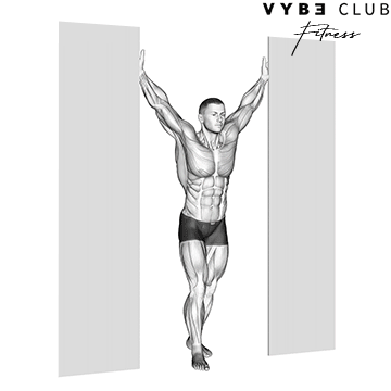 Starting Position: Stand in a doorway and raise both arms overhead, keeping your elbows straight. Your arms should be positioned against the door frame, with your hands above your head and fingers pointing towards the frame.