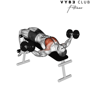 The dumbbell decline fly targets the lower portion of the chest, helping to build chest definition and strength. It also improves flexibility and stability in the shoulder joint while engaging the pectoral muscles through a wider range of motion.