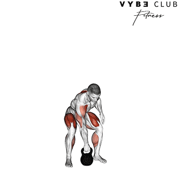Setup: Stand with your feet shoulder-width apart, with a kettlebell placed on the ground between your feet. Squat down and grip the kettlebell with one hand, keeping your back flat and core engaged.