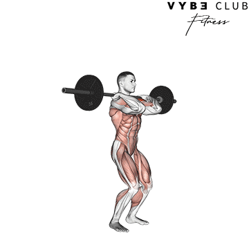 Starting Position: Lift the barbell to shoulder height. Keep elbows slightly in front and upper arms parallel to the floor.