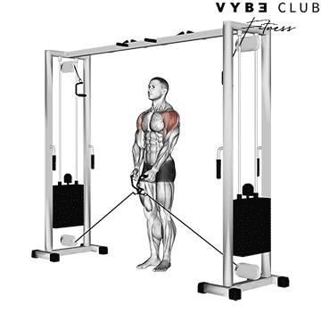 - Starting Position: Stand between two cable machines with the cables set to the lowest position. Grab the handles, step back slightly, and create tension.